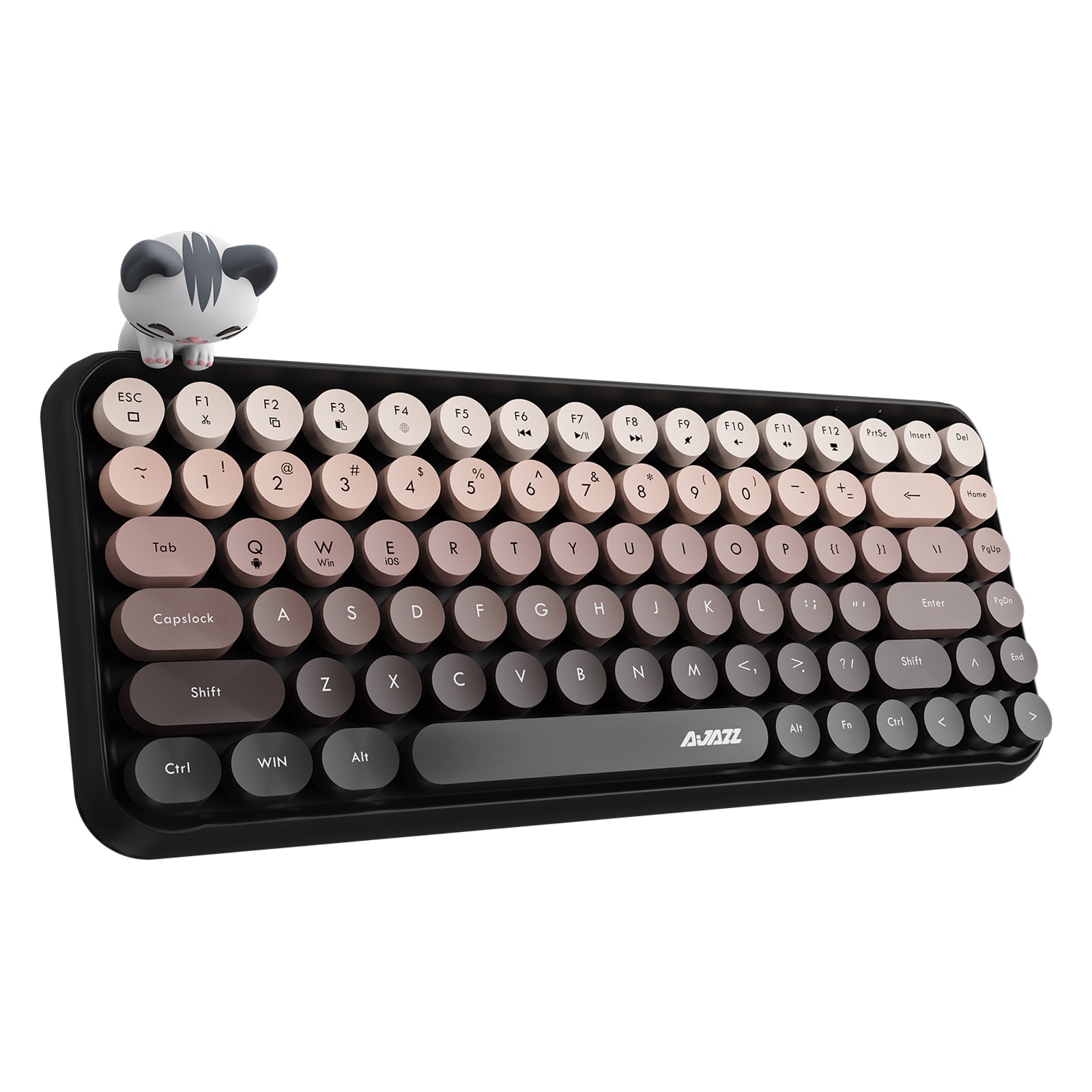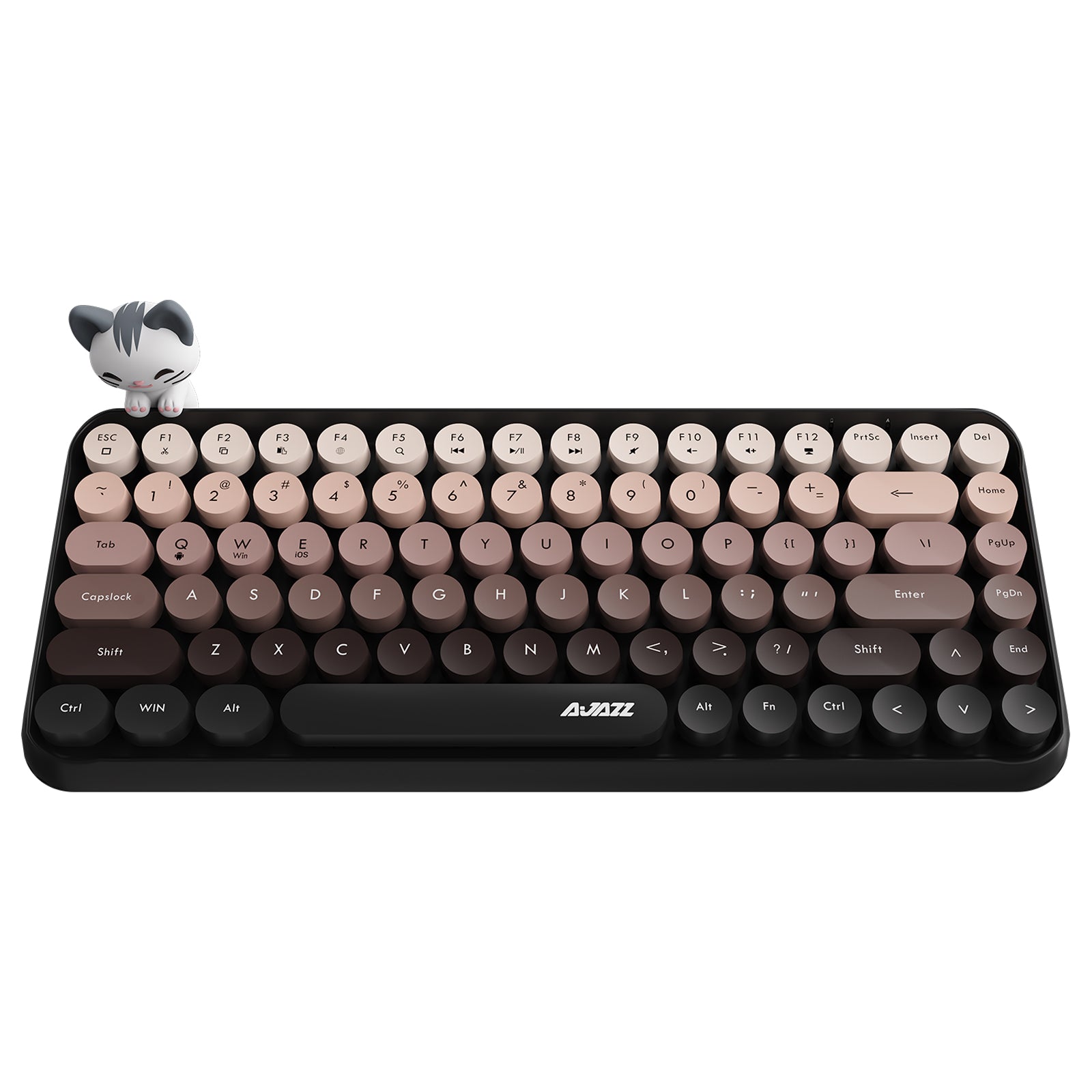 Ajazz 308I Çok Renkli Daktilo Tarzı Vintage Kablosuz Klavye Daktilo klavye, tıklama sesini büyük ölçüde azaltan tuş gürültü azaltma teknolojisini kullanır. Kimseyi rahatsız etme endişesi duymadan sessiz ve rahat bir yazma deneyimi sağlayabilir. Modern ve Vintage Bluetooth Klavye Retro stili modern tasarımla birleştiren, aynı zamanda en ileri bağlantı teknolojilerini benimseyen ve canlı renkleri cihazınızı aydınlatan daktilo kablosuz klavye, ev ve ofis klavyeniz için en iyi seçimdir. 84 Tuşlu özel yapısı sayesinde masaüstünüzde minimum alan kaplarken, 12 adet önceden atanmış multimedya tuşu sayesinde maksimum fonksiyonellik sağlar. 10 dakikadan uzun bir süre herhangi bir tuş işlemi olmazsa, klavye uyku durumuna girecek ve güç tasarrufu için Bluetooth bağlantısını otomatik olarak kesecektir; 2 * AAA pil ile çalışmaktadır, eğer pil zayıfsa, sağ üst köşedeki pil göstergesi size yedek pili hatırlatacaktır. Sevimli Bluetooth klavyeniz, Bluetooth özellikli Windows, Mac, Dizüstü Bilgisayarlar, PC, Android akıllı telefonlarla yaygın olarak uyumludur ve 20 milyondan fazla tıklanma ömrüne sahiptir.
