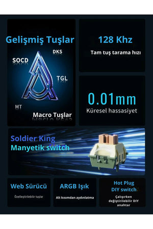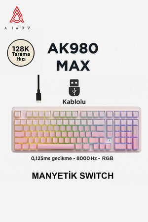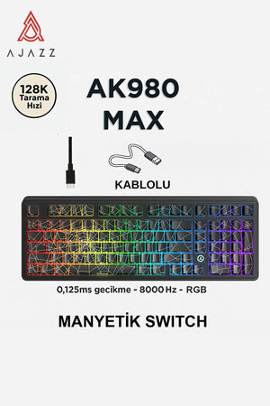 • AK980 Max HE Manyetik Switch Klavye- 128K Tarama Hızı-0.125 MS Ultra Düşük Gecikme-8000 Hz