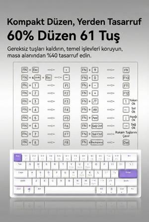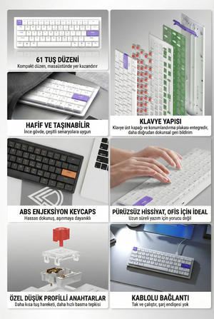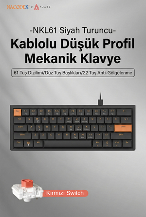 Nacodex NKL61- Low Profil Switch Kablolu Mekanik Oyun Klavyesi- IŞIKSIZ